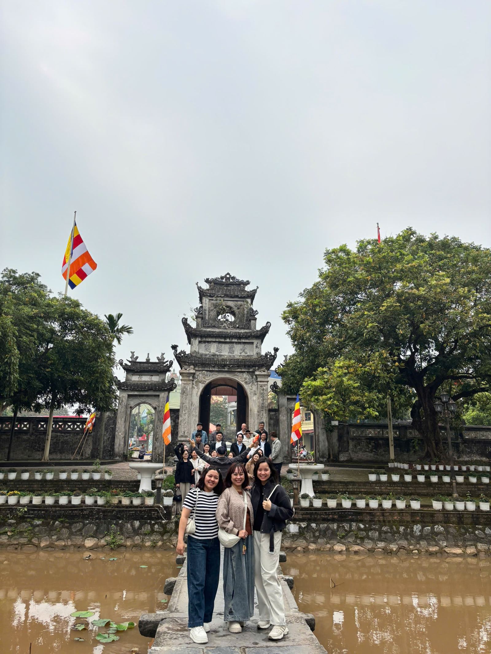 Sau đó, đoàn tiếp tục ghé thăm Chùa Chuông, ngôi chùa cổ kính được mệnh danh là “Phố Hiến đệ nhất danh lam”. Không gian thanh tịnh, kiến trúc truyền thống cùng những hàng cây cổ thụ tạo nên một khung cảnh trang nghiêm và yên bình, giúp mọi người tạm gác lại nhịp sống bận rộn để tận hưởng sự an nhiên của những ngày đầu năm.